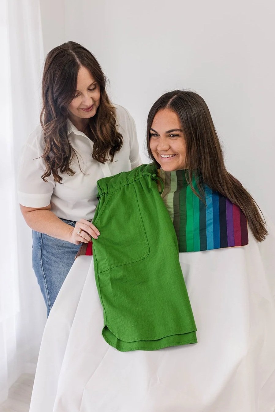 Pairing a full color analysis with face shape insights helps participants look polished and confident from every angle.